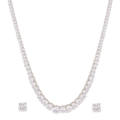 -. Feature : Solitaire Single Line Diamond Look Necklace Set. Austrian AAA Quality Zircons. Sparkling awesome product with twinkle shine . You can actually see colour sparkles in it. / No of Items : 1 Necklace with chain + 1 Pair of Earrings : Chain Length : Approx 15-16 Inches ( 39 - 40 Cms) / Plating : White Gold Plated / Rhodium Plating for that ever lasting shine. / GIFT FOR HER - A perfect gift for Every P.R.Incess . Ideal Gift for Loved ones, Wife, Mother, Daughter, Sister. Excellent gift for Birthday, Anniversary, Valentine, Christmas and Celebrations . / PERFECT gift for someone you LOVE .