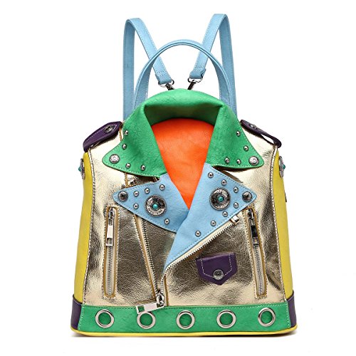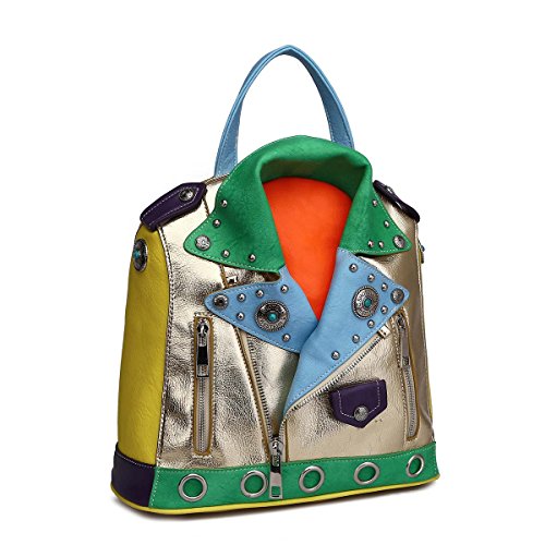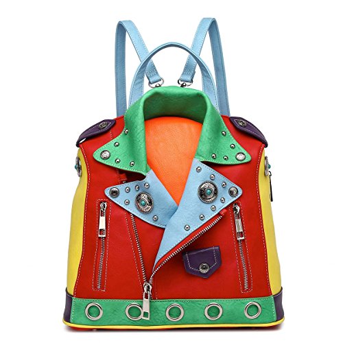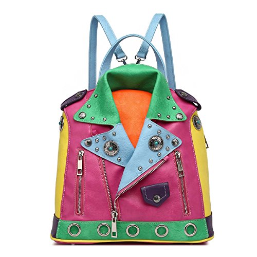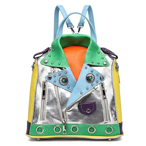 This multi color zipper biker jacket backpack is the perfect on the go bag for any biker style lover