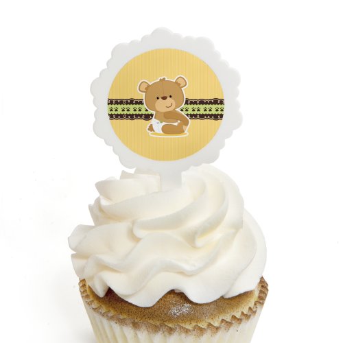 Cupcake toppers include 12 white decorative cupcake picks and 24 round sticker labels.