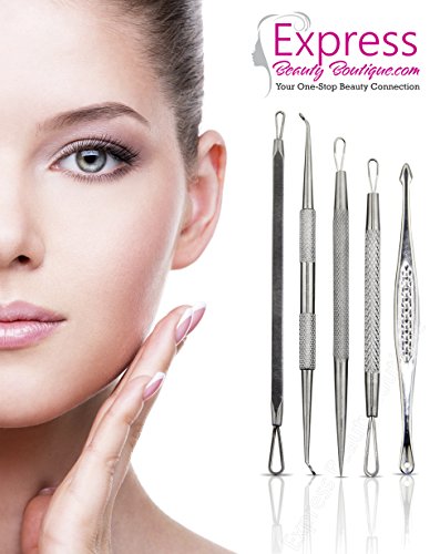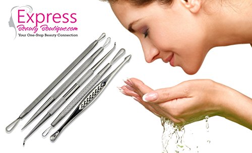 -. Feature : TOP QUALITY STAINLESS STEEL- This is a high quality pure stainless steel blackhead remover which is designed to remove stubborn and deep blackheads effectively. • EFFECTIVE BLEMISH AND BLACKHEAD REMOVER KIT! These 5 double ended tools allow you to reach blackheads, whiteheads, pimples and blemishes without effort, even in the most difficult spots. Remove blackheads from nose. You will how to get rid of blackheads / EASY TO USE - Our acne comedone extractor, removal tools are designed with professional quality in mind and are optimally balanced for self-removal of hard to reach blackheads. • EACH SET packed with bonus high quality Case and beautiful Gift Box, easy for storage, travel and perfect for gift giving. Makes a perfect Birthday gift / INCLUDES A FREE INSTRUCTIONS MANUAL AND TOOLS DESCRIPTION , PLEASE READ THE INSTRUCTION BEFORE YOU USE THE EXTRACTOR TOOLS (will receive it via email) / LIFETIME GUARANTEE - We offer a lifetime guarantee. If anything goes wrong with your Blackhead removal tool Kit, just let us know and we will give you a refund, no questions asked. Professional quality products for Professional Results / THE EXPRESS BEAUTY BOUTIQUETM EXPERIENCE - 100% focus on authentic connections and communication. We believe in engineering our products with the customer experience in mind, and if needed, open mindedness to innovate breakthrough designs contingent on customer feedback.