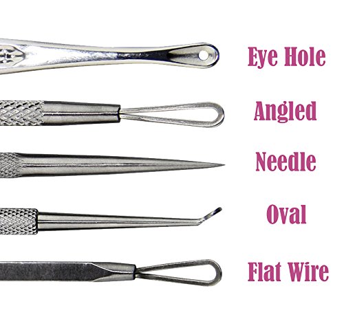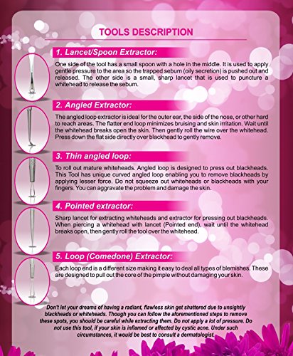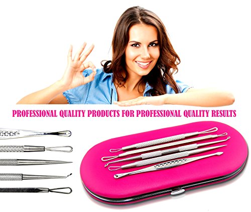 -. Title : Professional Blackhead & Blemish Remover Kit for Acne Skin, Blackheads, Pimples and Blemishes. 5pcs Extractors Blemish Tools with Faux Leather Pink Case.