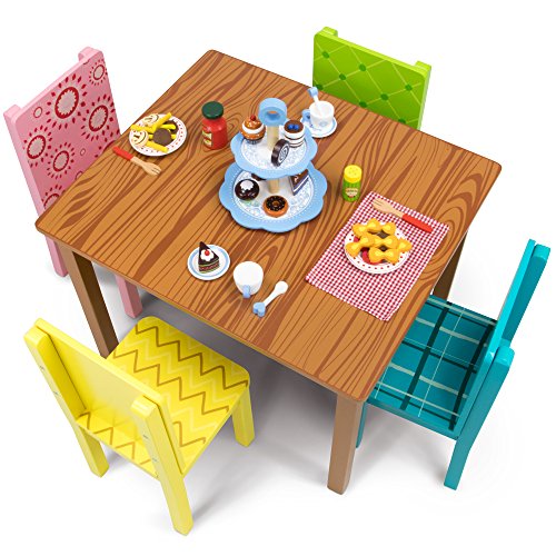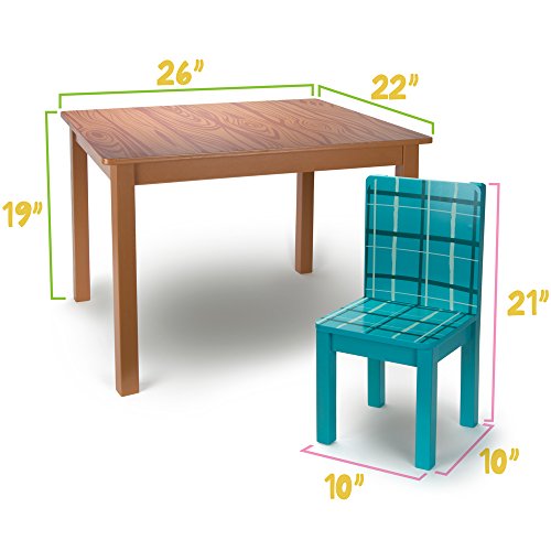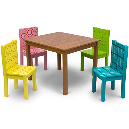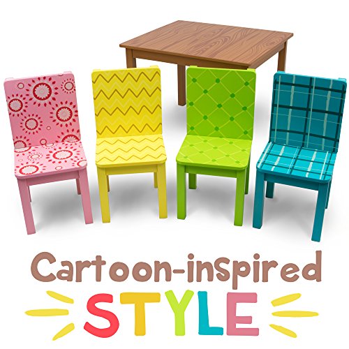 Introducing Funny Furniture, a collection of cartoon-inspired kids playroom furniture designed to look like they've been pulled right out of the television! Adorned with hand-drawn plaids, floral patterns, zigs and zags, you've never seen children's furniture quite like this. In this set, we've included a brown wood grain kids table and four colorful play chairs. Each set is made of natural wood and finished with water-based safe paints. Assembly is simple and all hardware, fasteners, tools, and instructions are included. Easy peasy!