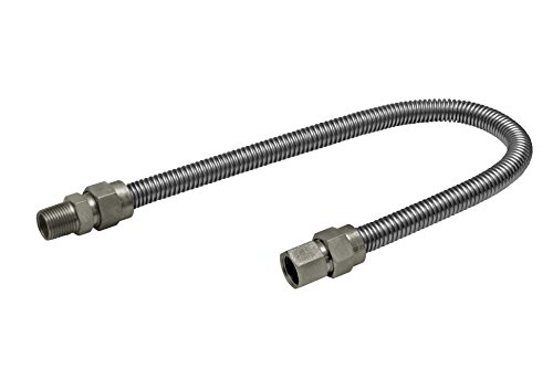Flextron FTGC-SS38-24C 24 Inch Flexible Gas Line Connector with 1/2 Inch Outer Diameter & 1/2 Inch FIP x 1/2 Inch MIP Fittings, Uncoated Stainless Steel Water Heater Connector, CSA Approved