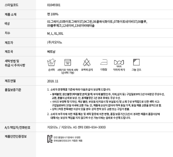 18FW 보다 제스트 부분을 조금 여유주어 더욱 편안하게 입을 수 있습니다.