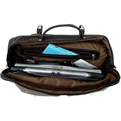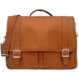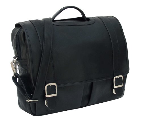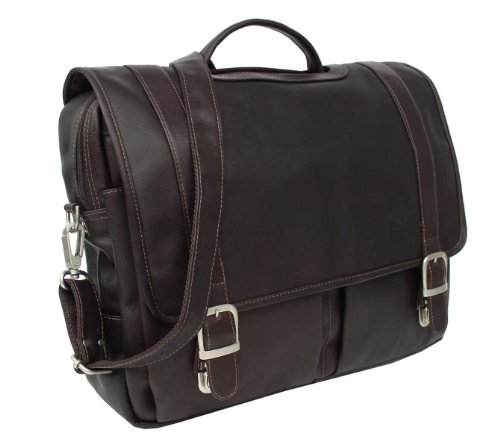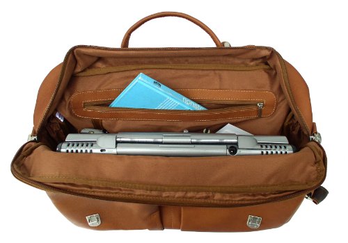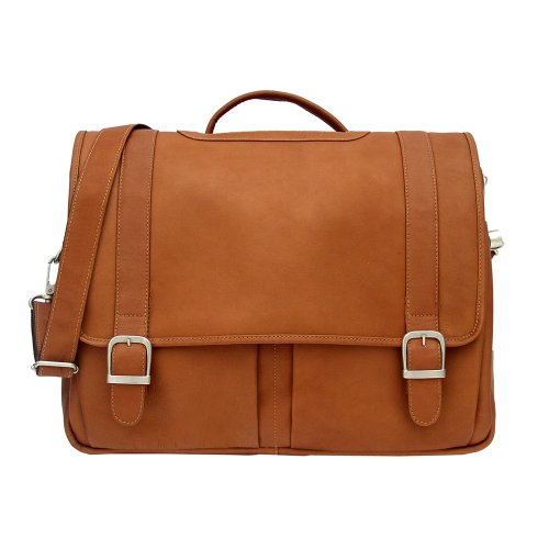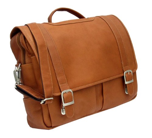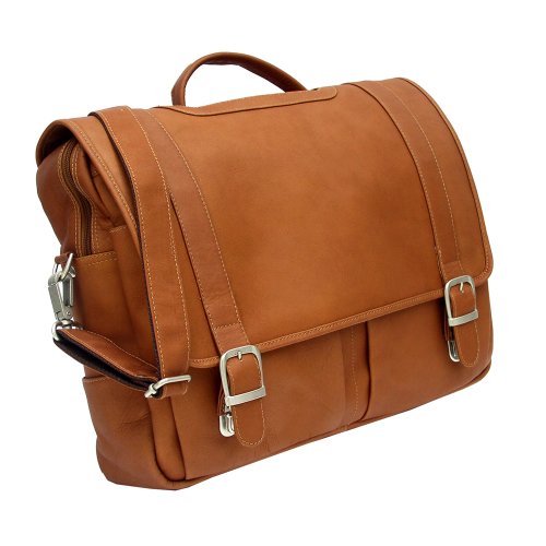 Studio : Piel Leather Publisher : Piel Leather Binding : Apparel Product Description Flap opening secured by dual clasps reveal two large pockets and long zippered pocket. Large main compartment with organizer and back zippered pocket. Fits up to 15.5 inch laptop, but compartment is not padded. Top handle for easy carrying and adjustable/detachable shoulder straps. 0