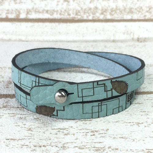 -. Title : [ミリュ] 迷路&ハリネズミ 二重巻き 本革 ブレスレット(国産レザー/薄浅葱カラー)