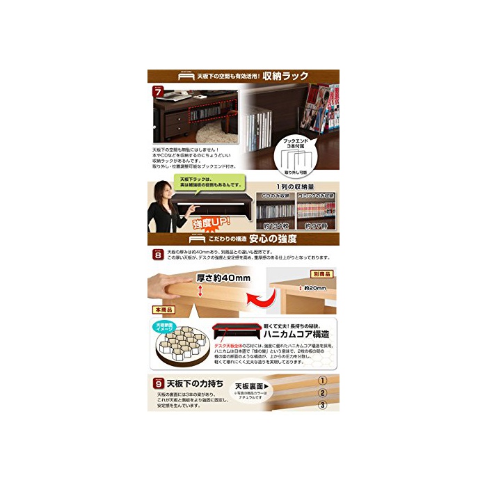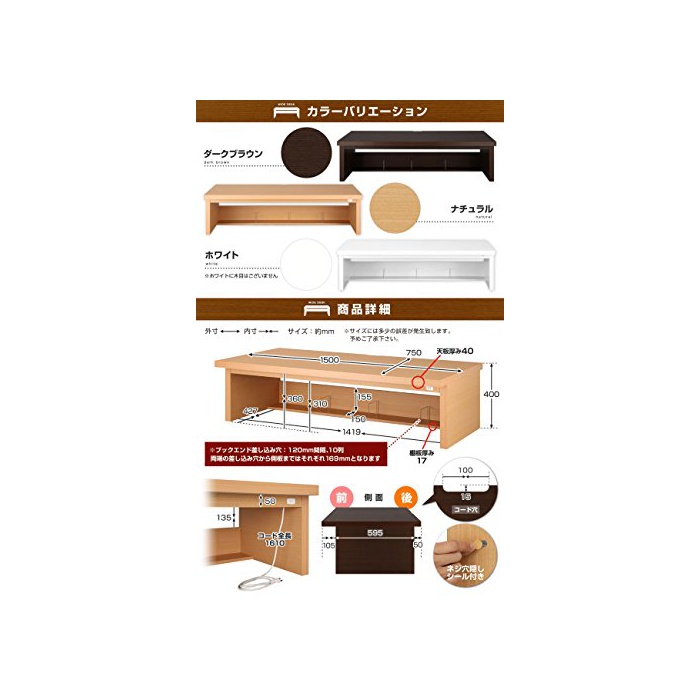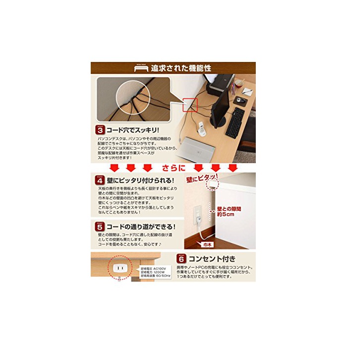 【재질】프린트 화장 판,콘센트1 개입:1200W 【생산국】일본 【데스크내 하중】약30kg