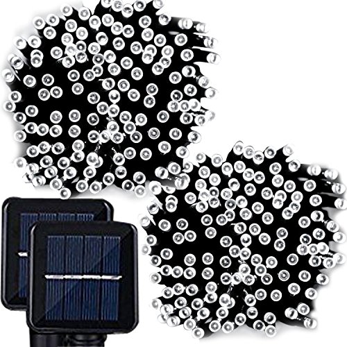 Solar String Lights, Lemontec 200 Led Holiday String Lighting Outdoor Solar Patio Lights Fit Chrismas Garden Wedding Party Landscape[White], 2 Pack 400 LED