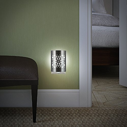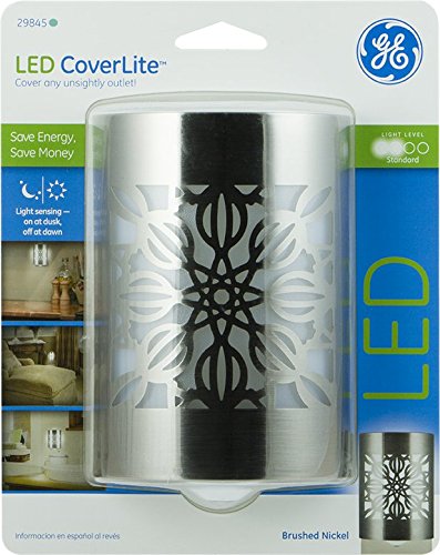Cover unsightly outlets while providing a soft glow with the GE floral LED Coverlite night light. This LED night light is designed to fully cover two outlets when one is not in use, though it can be positioned to keep a second outlet free for use. It features light-sensing technology which automatically turns the night light on or off with the changing room light. The long-life LEDs mean there will be no bulbs to replace and it's energy efficient, using just pennies worth of electricity per year. The GE floral LED Coverlite night light's stylish finish, modern design and always cool-to-the-touch bulbs make it perfect for any room in your home. It is intended for indoor use only. This product is UL listed and comes with a limited-lifetime warranty.Feature