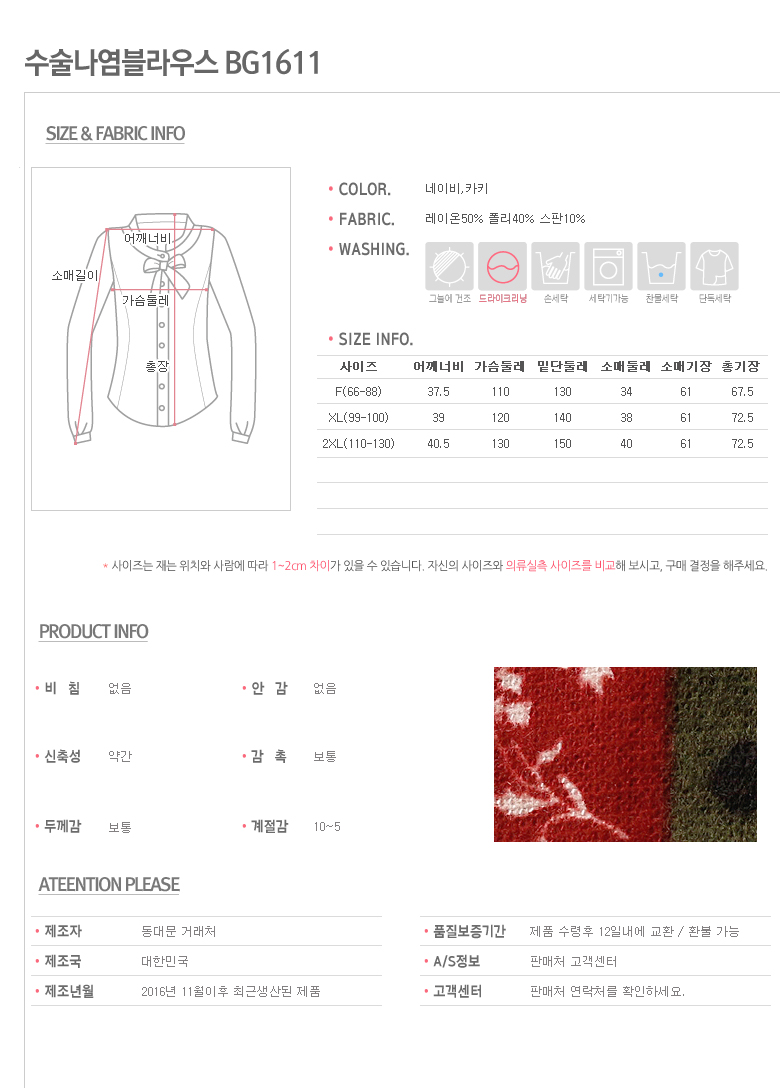 Big Size Surgical Knitted Blouse BG1611 A Pit