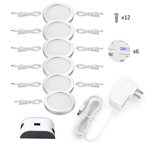 Ustellar LED Under Cabinet Lighting Kit, 1020lm, Hand Wave Activated Control Under Counter Lights, Puck Lights, DC 12V Kitchen Lighting, Closet Lights, 6000K Daylight White, Set of 6