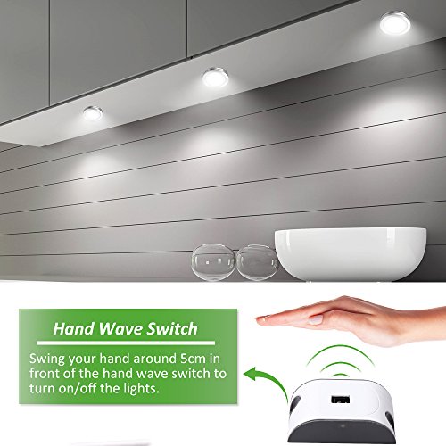 HAND WAVE ACTIVATED: The Sensitive Sensor of our Under Cabinet Lights turn ON/OFF with a simple wave. Great for Busy Days in the Kitchen. No pesky remote control that gets dirty and bothers you while you work.