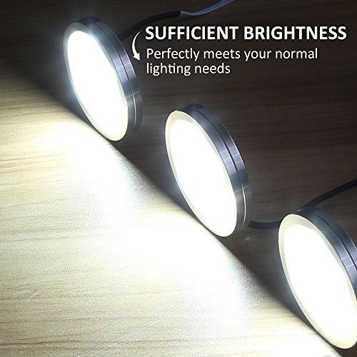 ENERGY EFFICIENT&LONG LIFESPAN: Each puck light equals to a 25W halogen bulb, which helps to save over 90% electric power. Total wattage is 12W. Patented heat dissipation design, long working time guaranteed.