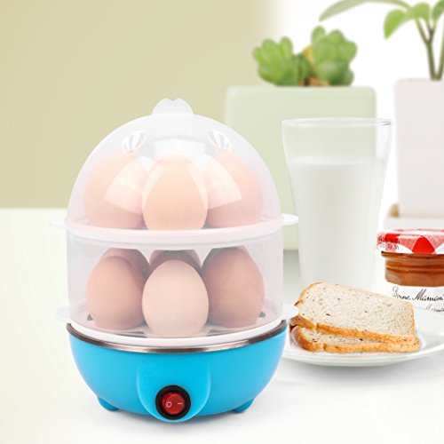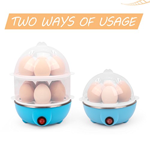 √ Double Decker - Our egg cooker with a unique hollow design that prevents cracking and a double tray feature you can steam or poach up to 14 eggs to perfection at a same time.