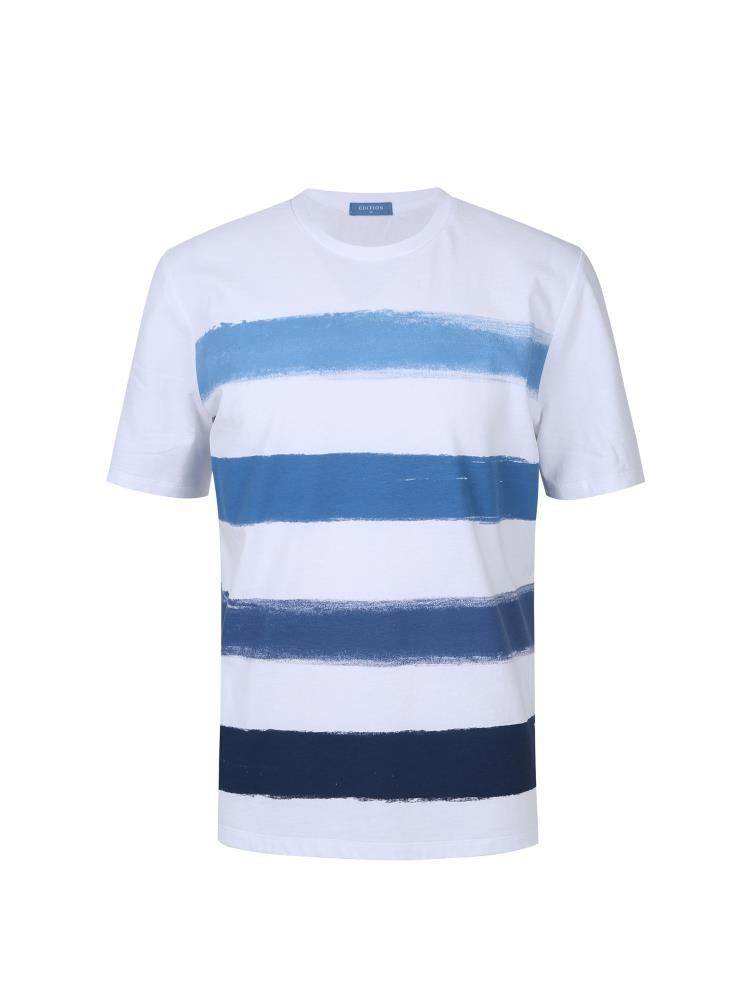 -그라데이션 스트라이프 프린팅 티셔츠-