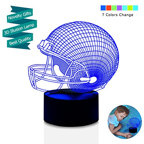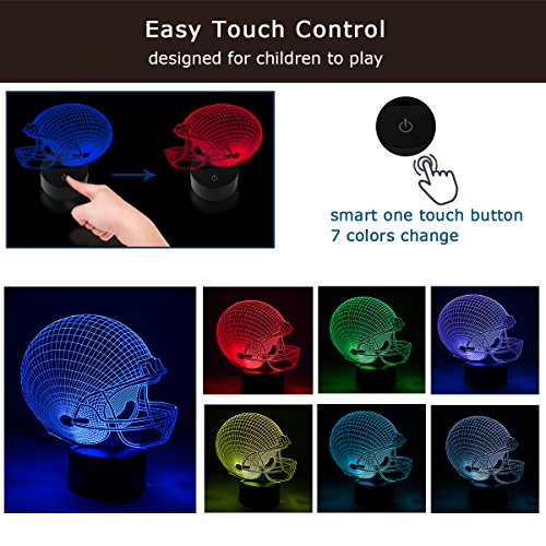 LED Night Light for Boys Men, 3D Illusion Lamp, Football Helmet 7 Colors Changing Room Bedroom Decor Lighting, Novelty Sports Fan Gift Ideas for Kids, Adults, Friends Festival Birthday Presents