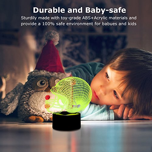 - 3D VISUAL EFFECT- Novelty 3D illusion night light has a nice hologram effect, make your surroundings more lively. Visitors will be amazed at the illusion that the lamp creates. This lamp is bound to light up not only your room, but also your lives giving you good vibes.