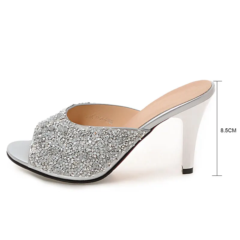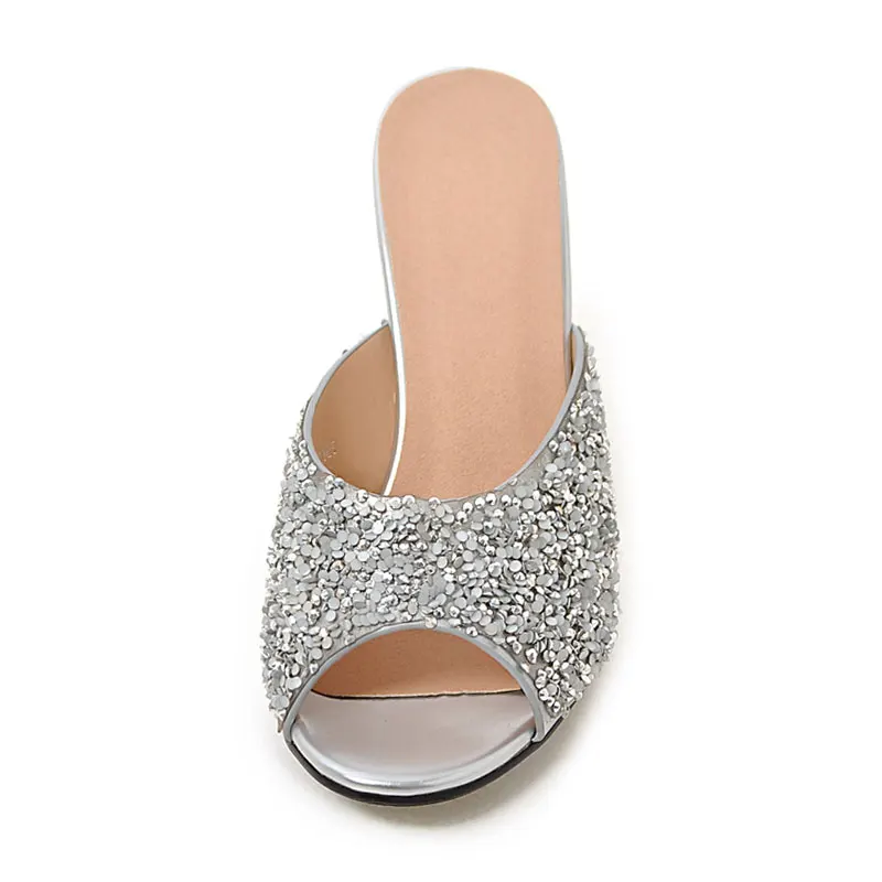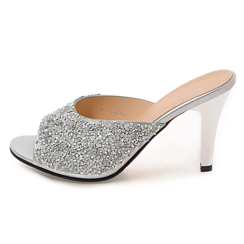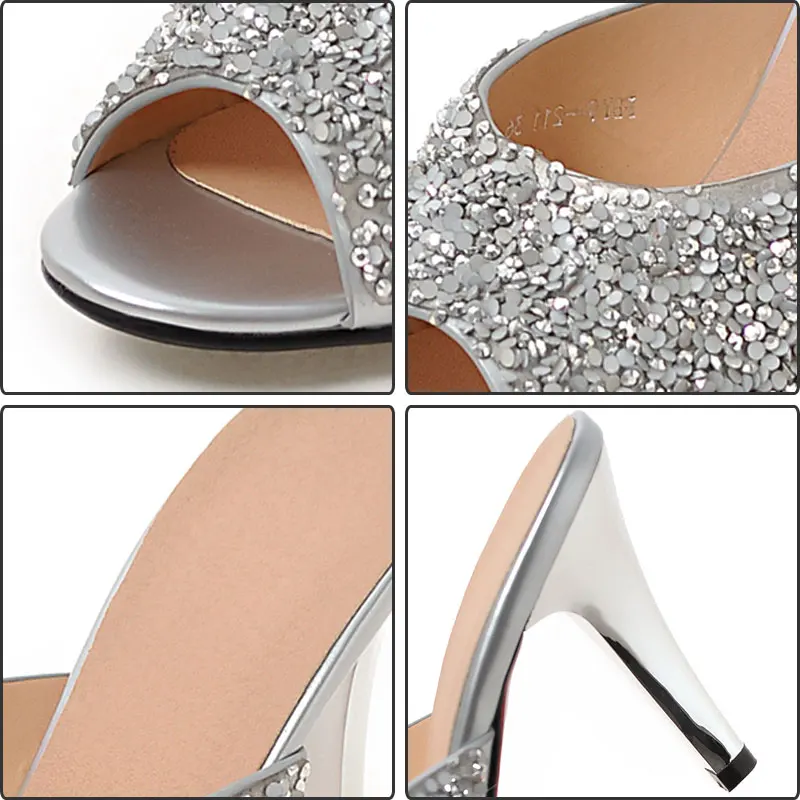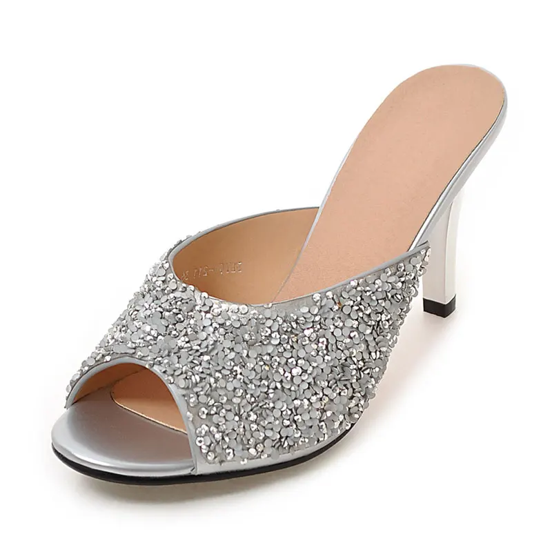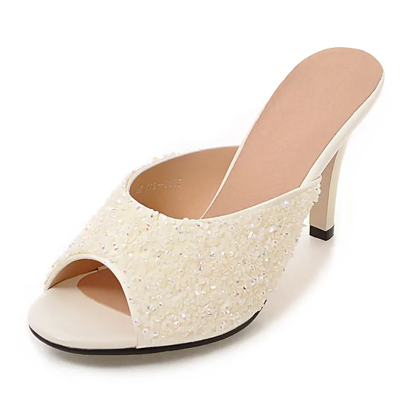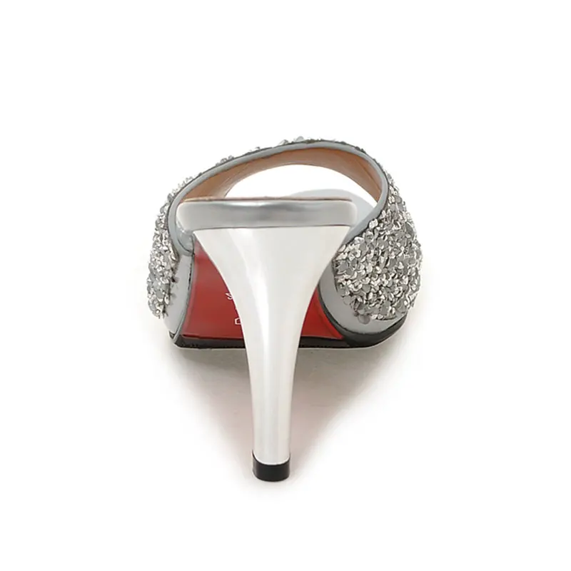 Product name:peep toe glitter women high heel slides sandals