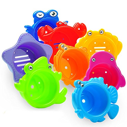 Eight different water outlet, let the baby fun in bath process.easy to stack and pull apart stacking toys. Let your kids have loads of fun as they stack up the nesting cups, pull them apart and use them to scoop and strain water in the bath. Not only are these baby stacking cups for bathtime fun but also for beach and play-doh time as well.