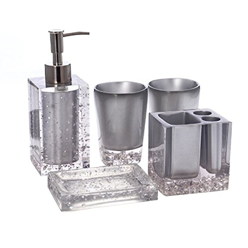 Resin Soap Dish, Soap Dispenser, Toothbrush Holder & Tumbler Bathroom Accessory 5 Piece Set
