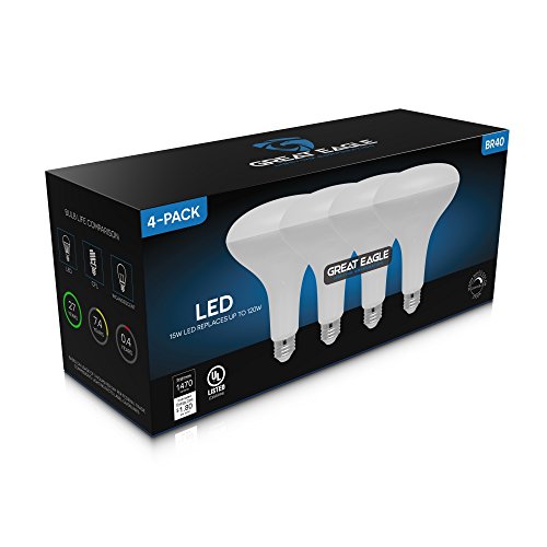 Great Eagle LED BR40 2700K Dimmable Light Bulb, 15W(120W Equivalent) UL Listed 1470 Lumens Warm White Color for Recessed and Track Lighting Fixtures (4-pack)