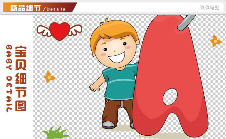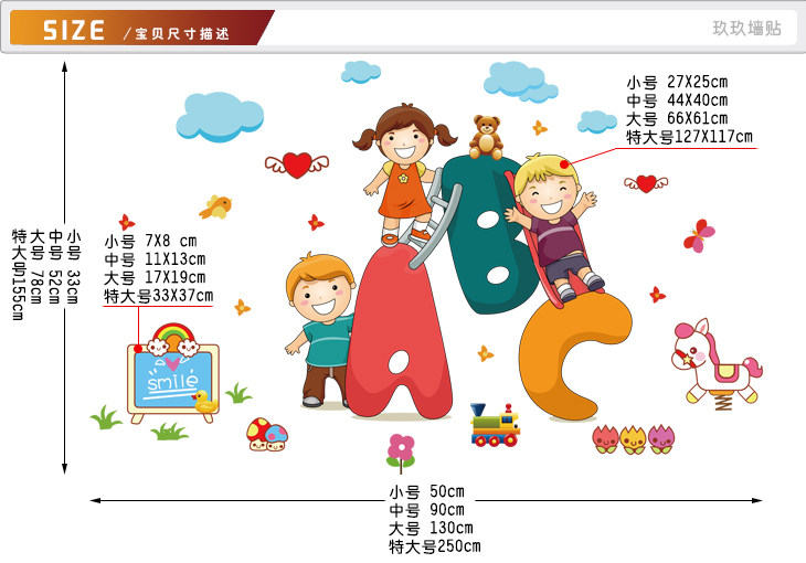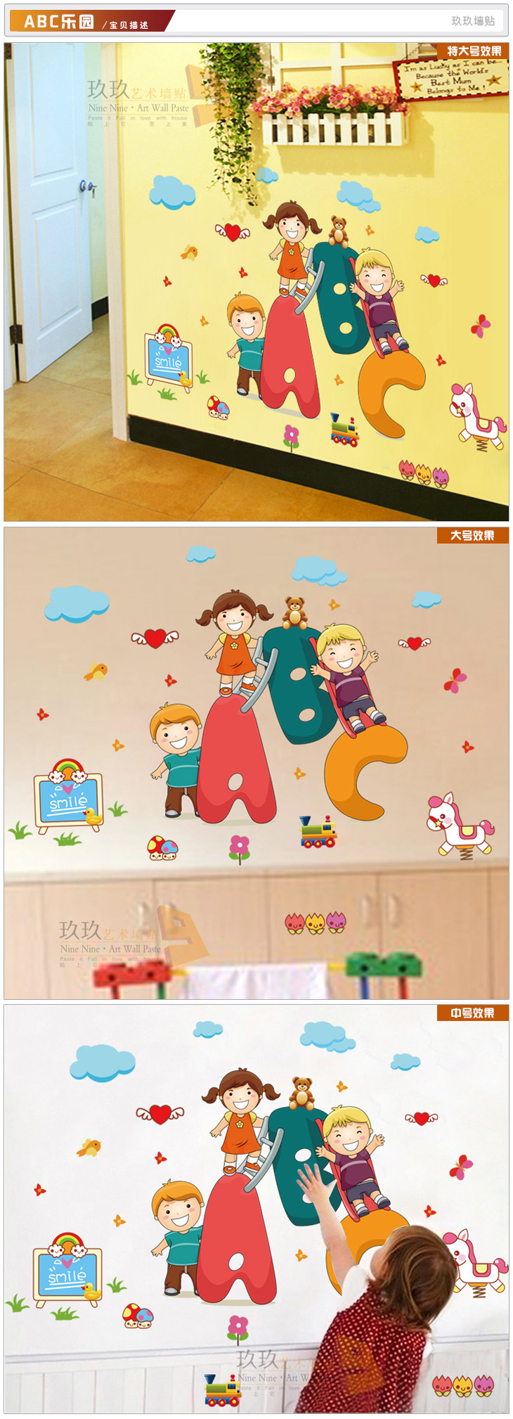 幼儿园英语角少儿开心学英语培训班装饰卡通小人ABC墙贴纸贴画