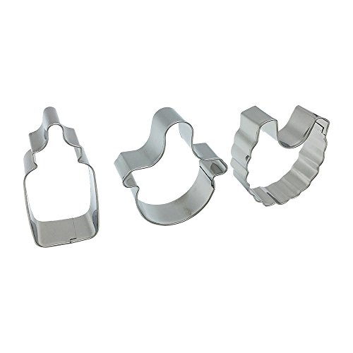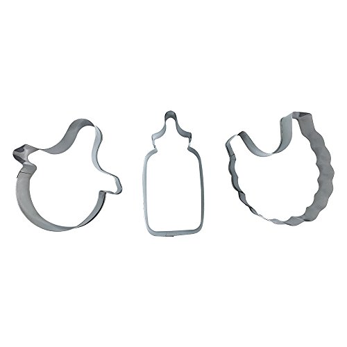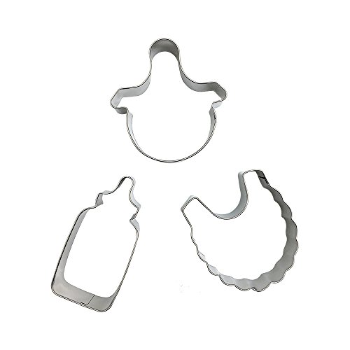 Mziart Cute Baby Bib Bottle Nipple Stainless Steel Cookie Cutter Set of 3 Fondant Cutter Metal Cookie Molds