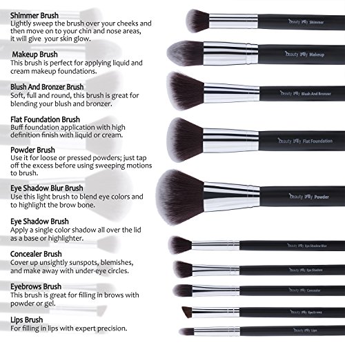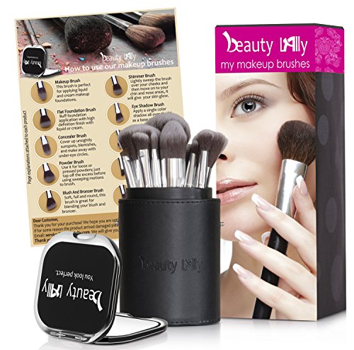 - Title : Beauty Lally 10 Pcs makeup brushes set-soft, silky professional brushes, All brushes are labeled. Comes with elegant black case holder (great for traveling). plus small high-quality makeup mirror