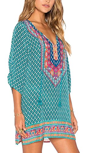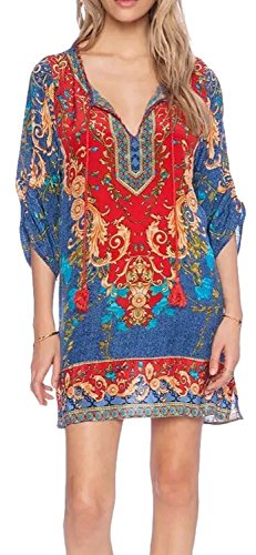 Bohemian dress featured vintage floral printed ,fashionable ethnic style,loose fit ,thigh length.You can wear it like a tunic top with leggings or jeans if dress is short for you.