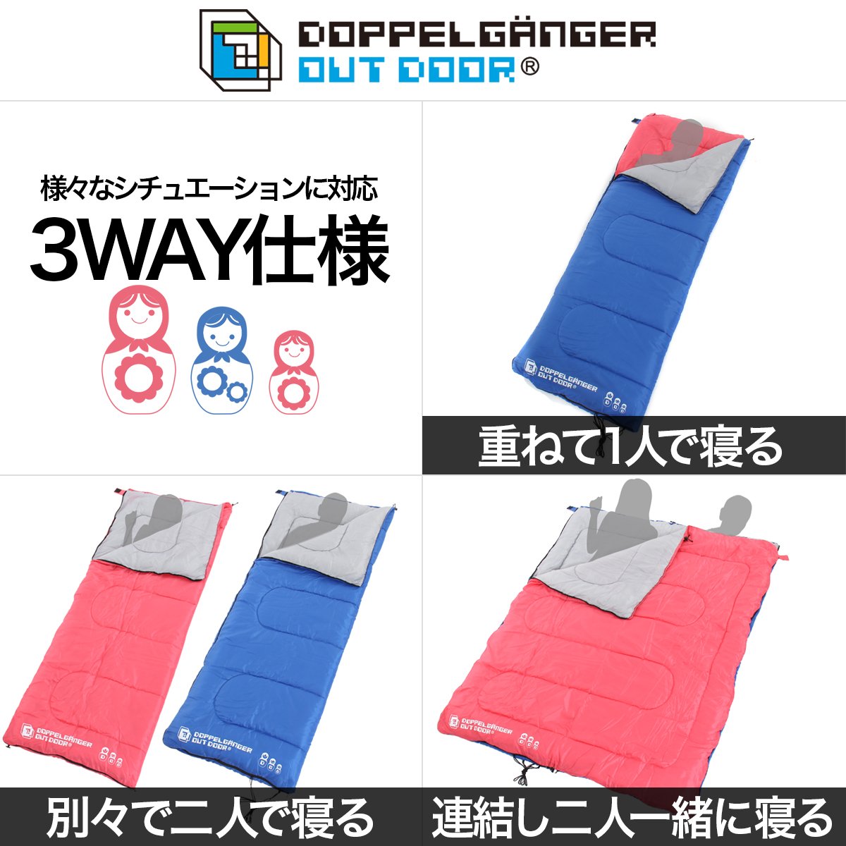 Matryoshka sleeping bag S2-109 is able to correspond to a wide temperature to eliminate such anxiety of outdoor camp beginner.