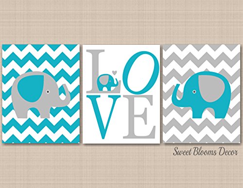 -. Title : Elephant Nursery Wall Art,Teal Aqua Gray Elephant Nursery Wall Art,Elephant Boy Room Decor,Chevron Elephant Nursery Décor,Teal Elephant Baby Shower Decor Gift-UNFRAMED 3 PRINTS(NOT CANVAS)C428
