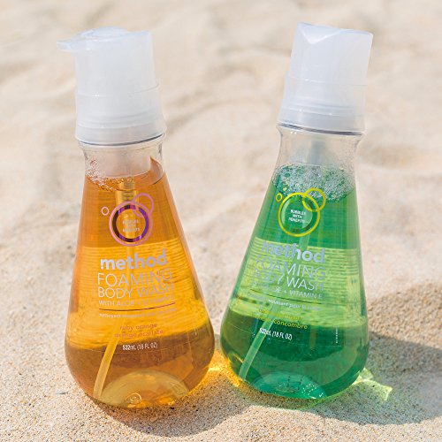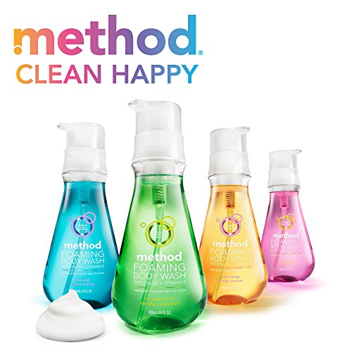 Contains 1-18 ounce pump bottle of Method Foaming Body Wash, Cucumber Mint