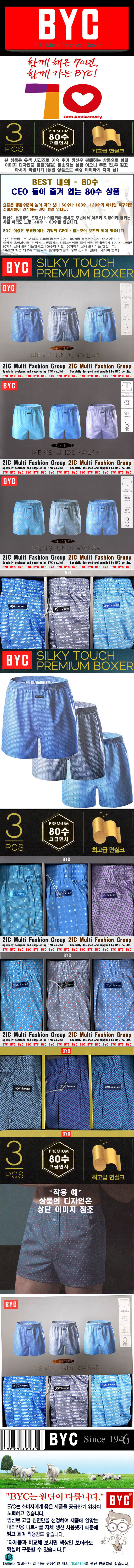 BYC 트렁크팬티중 실키 면실크 3매입으로 출시된 면100% 80수 트렁크 상품 입니다