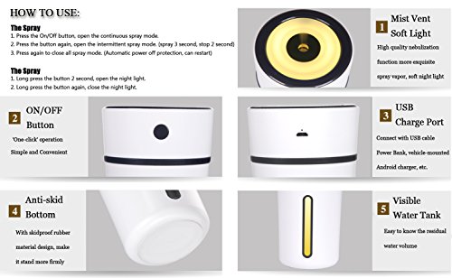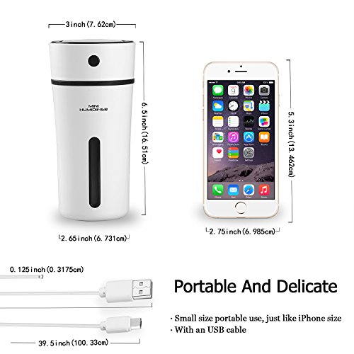 - Attractive Design and Small Size - This is a portable cool mist humidifier filter with small size, is a best ultrasonic car humidifiers cup, a little bigger than your iPhone, just like a vacuum cup. (Please check detail description or contact customer service if you don't know how to let the diffuser spray.)