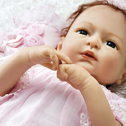 - Feature : Amazingly lifelike and realistic 22 inch baby doll sculpted by artist Cathy Rowland. / Caroline was sculpted so realistically in baby soft GentleTouch vinyl to look and feel just like a real baby! / She comes with a weighted soft cloth body (with beads and pellets) for the most lifelike feel when you cuddle her close. / She has beautiful hand set eyes, hand painted details, hand applied eyelashes and gorgeous hand applied faux mohair. / She measures 14 inches when seated. She has 3/4 vinyl arms and 3/4 vinyl legs.
