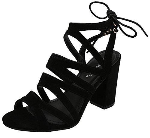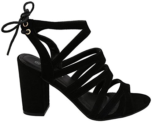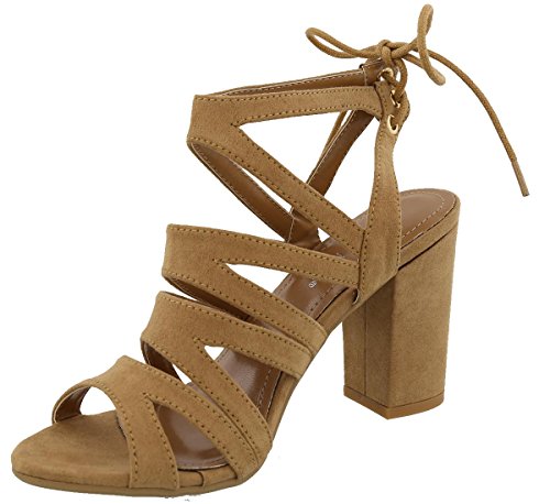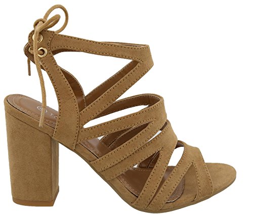 Top Moda Women's Cutout Tie Back Stacked Chunky Platform Heel Sandal