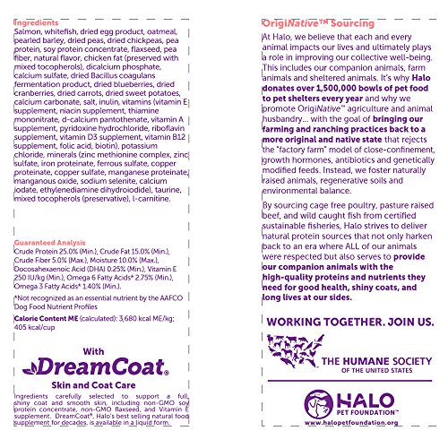 -. Title : Halo Holistic Dry Dog Food, Wild Salmon and Whitefish Recipe, 25 LB Bag of Natural Dog Food