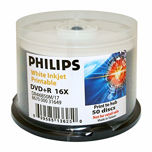 (Philips)/Accessories Supplies/Computer Accessories/DIRECT FROM USA/Philips DVD R 16x Duplication Grade White Inkjet Printable to Hub 50pk Cake Box