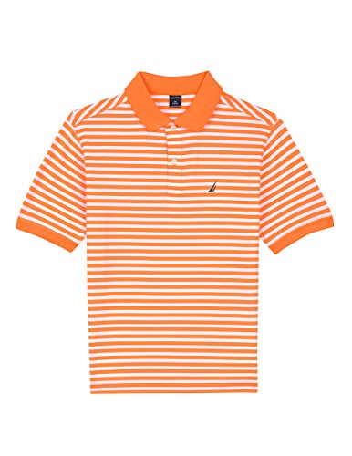 Nautica Big Boys' Short Sleeve Mini Stripe Poly Polo, Medium Orange, L(14/16)