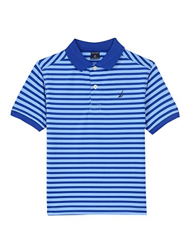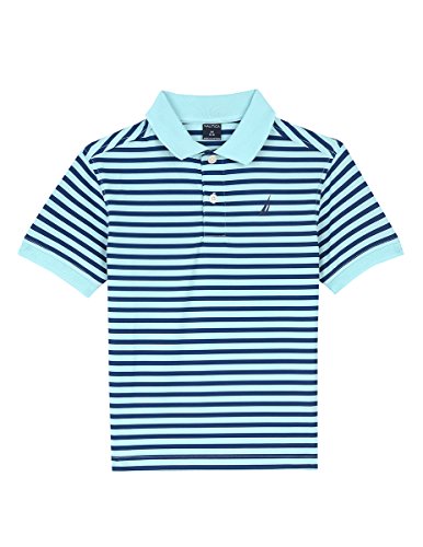 Nautica short sleeve stripe polo shirt. Features wicking polyester fabric that wicks moisture away from the skin. Dry and comfortable wear and feel.