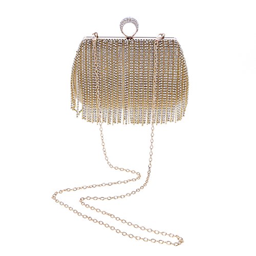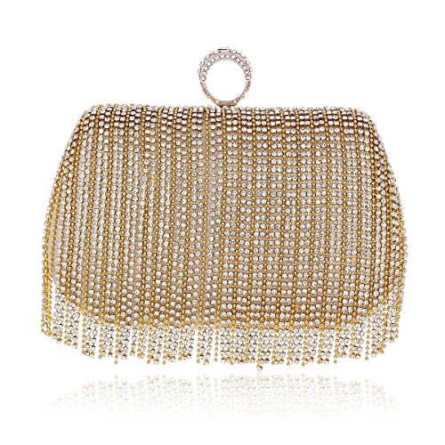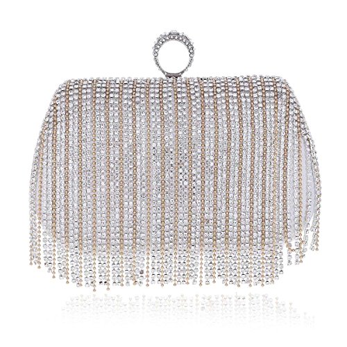 Product Description Rhinestone and bead tassels hung on the front. Premium alloy made. Entry with ring-shaped snap closure. Equipped with 1 crossbody chain. Clutch by hand or crossbody bag use. Measurement: 18 x 11 x 5.8cm (7.1 x 4.3 x 2.2 inches); crossbody chain 115cm (44.8 inches). 0