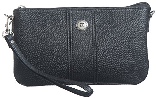 Studio : Stone Mountain Plugged In Publisher : Stone Mountain Plugged In Product Description Leather wristlet by Stone Mountain features 6 credit card slots, detachable cell phone charger is RFID safe. Micro USB lightning cables are included. Wristlet measures 9' L x 1' W x 5.5' H. 6' wristlet strap. Leather. 0