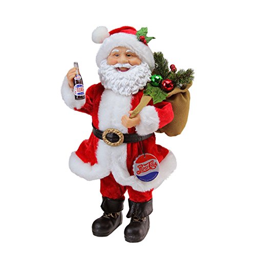 Northlight Santa Claus with Gift Sack Holding Pepsi Cola Bottle and Cap Christmas Figure, 12", Red