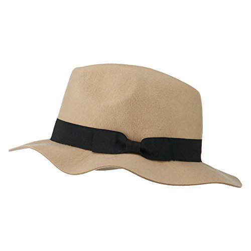 -. Title : Ladies Grosgrain Ribbon Wool Hat - Camel