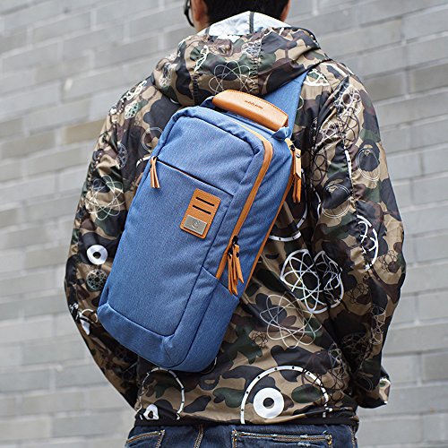 -. Title : Dpark New Group Series Water-resistant Canvas& PU Sling Chest Shoulder Bag Pack Small Crossbody Backpacks Portable Sport Pack Travel Backpack for Men Women Child