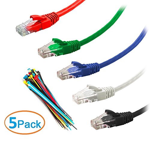 CAT6 Snagless | 3 Foot | Multi-color | 5 Pack | Network Ethernet Patch Cable + Cable Ties