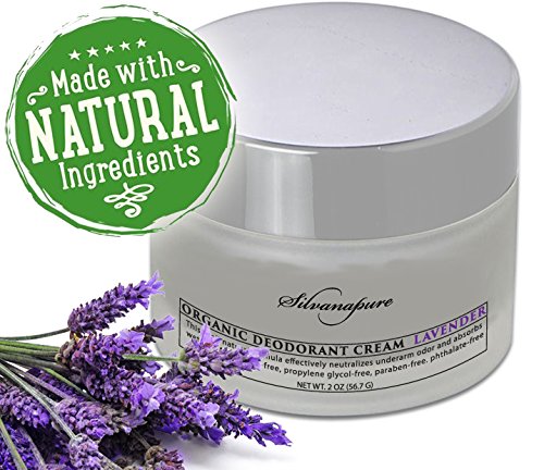 Organic*, chemical-free cream deodorant that really works! This cream will not leave any residue on your clothes! Silvanapure's Deodorant Cream is all natural and uniquely powerful. The frosting-like consistency allows for easy manual application and rapid absorption, and is ideal for all skin types. The clean, herbaceous fragrance of pure Lavender is tranquil and soothing. Antioxidant and antiseptic properties complement this top-selling deodorant. Ingredients: Cocos nucifera (Organic Coconut Oil), Sodium bicarbonate - non aluminum (Baking Soda), Organic Maranta arundinacea (Organic Arrowroot), Butyrospermum parkii (Organic Fair Trade Shea Butter), Lavender Essential Oil, Prumus dulcis (Organic Sweet Almond Oil) Size: 2 oz