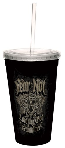 Tree-Free Greetings cc34239 Fear Not Biker Style: Deuteronomy 31:6 Artful Traveler Double-Walled Cool Cup with Reusable Straw, 16-Ounce