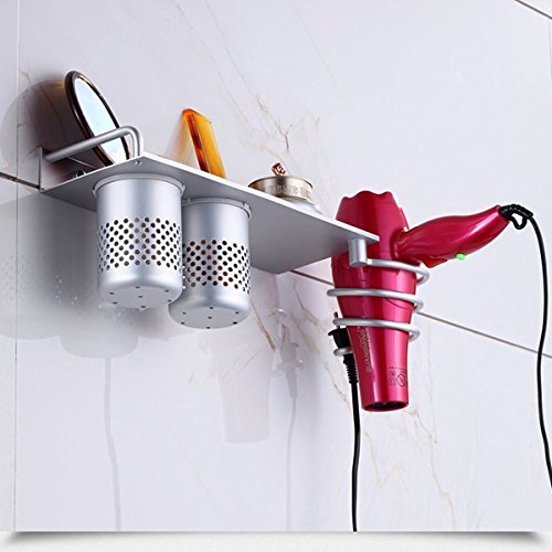 Youbedo Portable Spiral Hair Blow Dryer Stand Flat Holder Hair Dryer Hanging Rack Organizer with 2 Cups -Space Aluminum