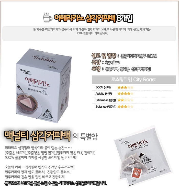 * 진한 100% 콜롬비아산 프리미엄 원두커피
